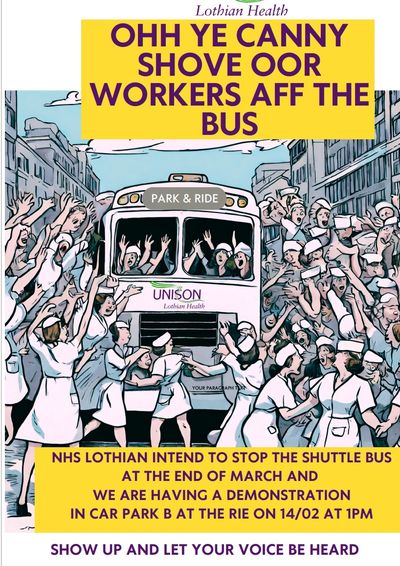NHS Lothian intend to stop the shuttle bus at end of March and we are having a demonstration in car park B at the RIE on 14/02 at 1pm.